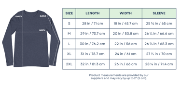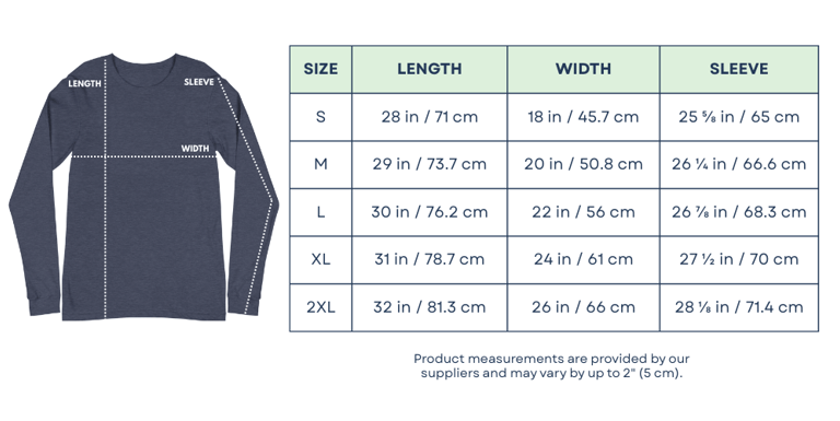Because TPG items are made to order and printed just for you, we encourage you to take your time and review the sizing charts below. Then choose the size that feels right for you.